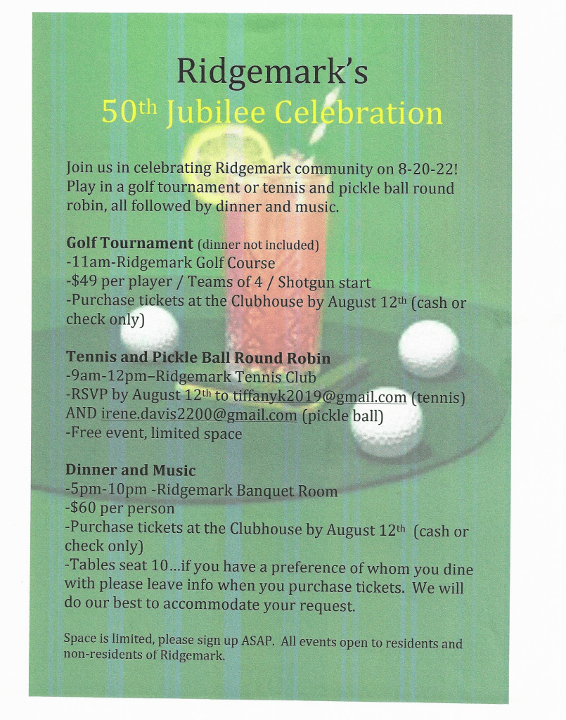 Ridgemark HOA XI Block Party – Sunday, Sept. 20